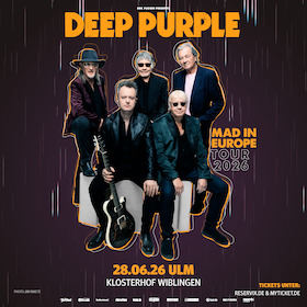 Mit weltbekannten Hymnen wie „Smoke On The Water“ und „Child In Time“ haben Deep Purple Hardrock und Heavy Metal nicht nur geprägt, sondern definiert und mitbegründet. Deep Purple live bedeutet harte Gitarrenriffs, messerscharfe Soli und treibende Songs, die in die Geschichte der Rockmusik eingegangen sind. 2026 steht die legendäre Band wieder auf den Bühnen und du kannst sie live bei ihrer „MAD IN EUROPE“- Tour erleben. Sichere dir dafür jetzt deine Tickets bei Reservix!